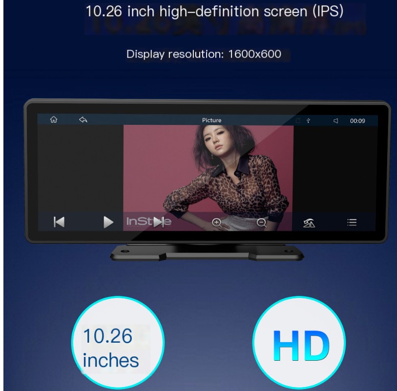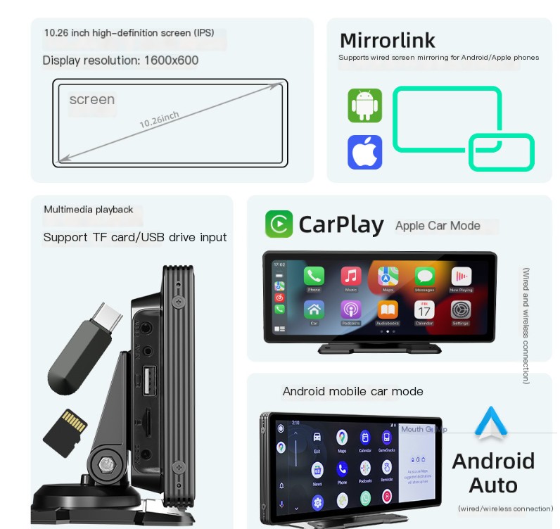 Experience the ultimate in-car entertainment with our 0.26-inch Portable Bluetooth MP5 Player. This sleek and compact car radio features a stunning 10.26-inch HD IPS screen with a resolution of 1600x600, ensuring that every detail of your favorite shows and music videos pops with vibrant clarity.